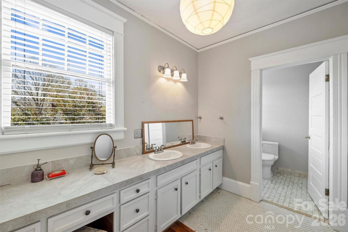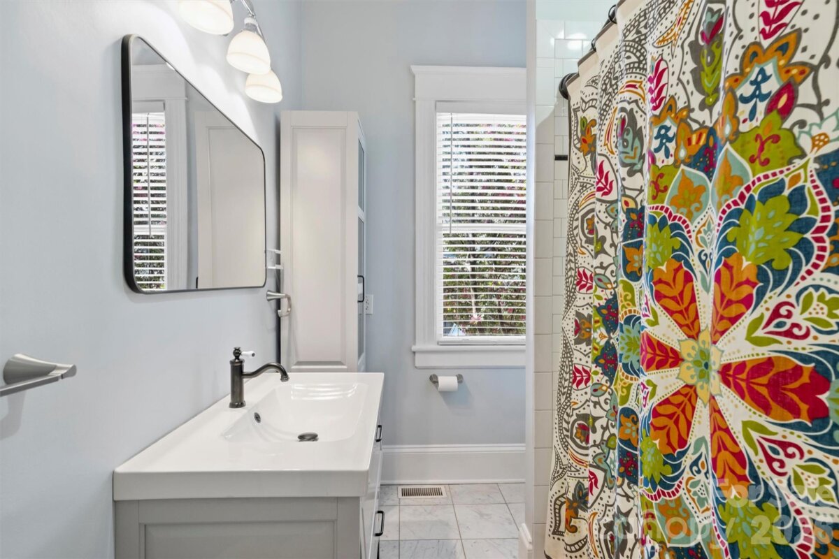 Gorgeous move in ready Craftsman home located in Historic Dilworth neighborhood, Charlotte, NC! Exquisite details throughout! 4 Bedrooms, 2 Baths. 3,056 SF. Large level backyard with handsome fencing, landscape lighting. New neutral interior paint. Handsome new exterior paint late 2025! This home will impress with 10' tall ceilings on Main, which create a lovely open feel. There is an open finished covered front porch, 10' x 17'. Hardwood floors throughout the house, tile in baths. Kitchen has tile countertops, 6-burner electric cooktop, 27" electric wall oven, island, several lovely open shelves to display dishes. Laundry Room on Main with washer and dryer. Rear entrance to the home opens to a large Deck overlooking gorgeous new landscaping, gorgeous trees. Primary Bedroom on Main. Handsome staircase that turns and leads to Upper Level. Sitting Room that can be used as a Media area, tables for games, sofas. 1 full Bath and 3 Bedrooms on this level of the home. Architectural Roof. Basement has an industrial sized humidifier, vapor barrier, French drain, plenty of storage! No HOA. Desirable schools. Well maintained. Easy proximity to Latta Park, Sugar Creek Greenway paths, SouthEnd. Close to the hospital, shopping, dining. Great area for walking, biking!