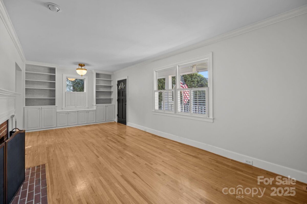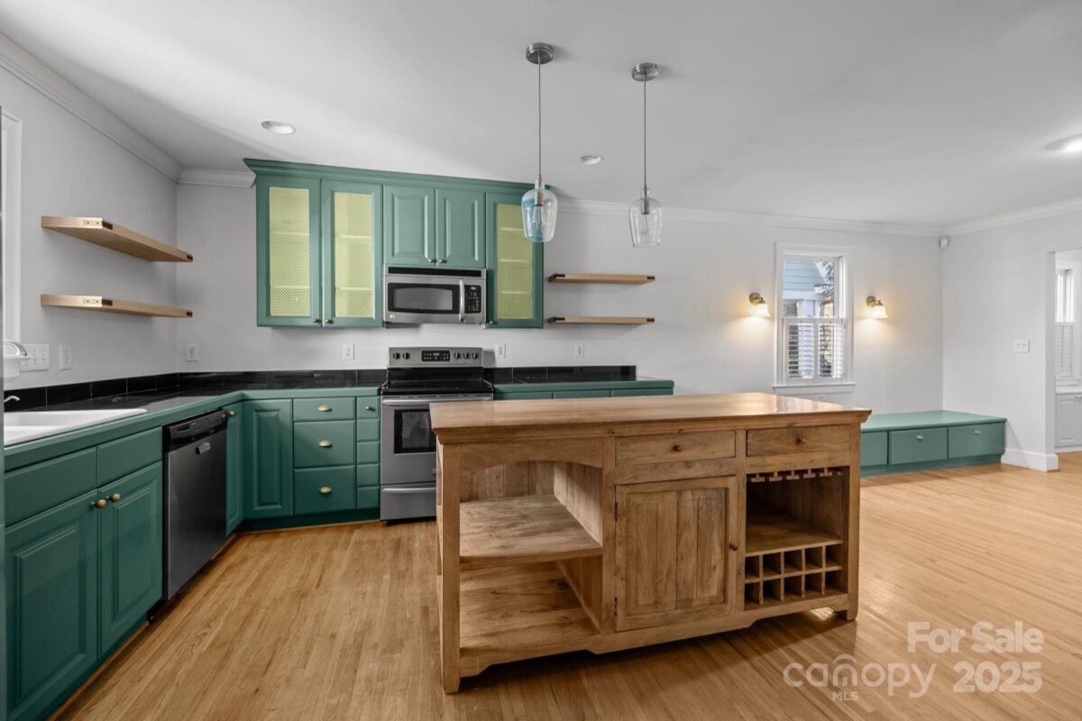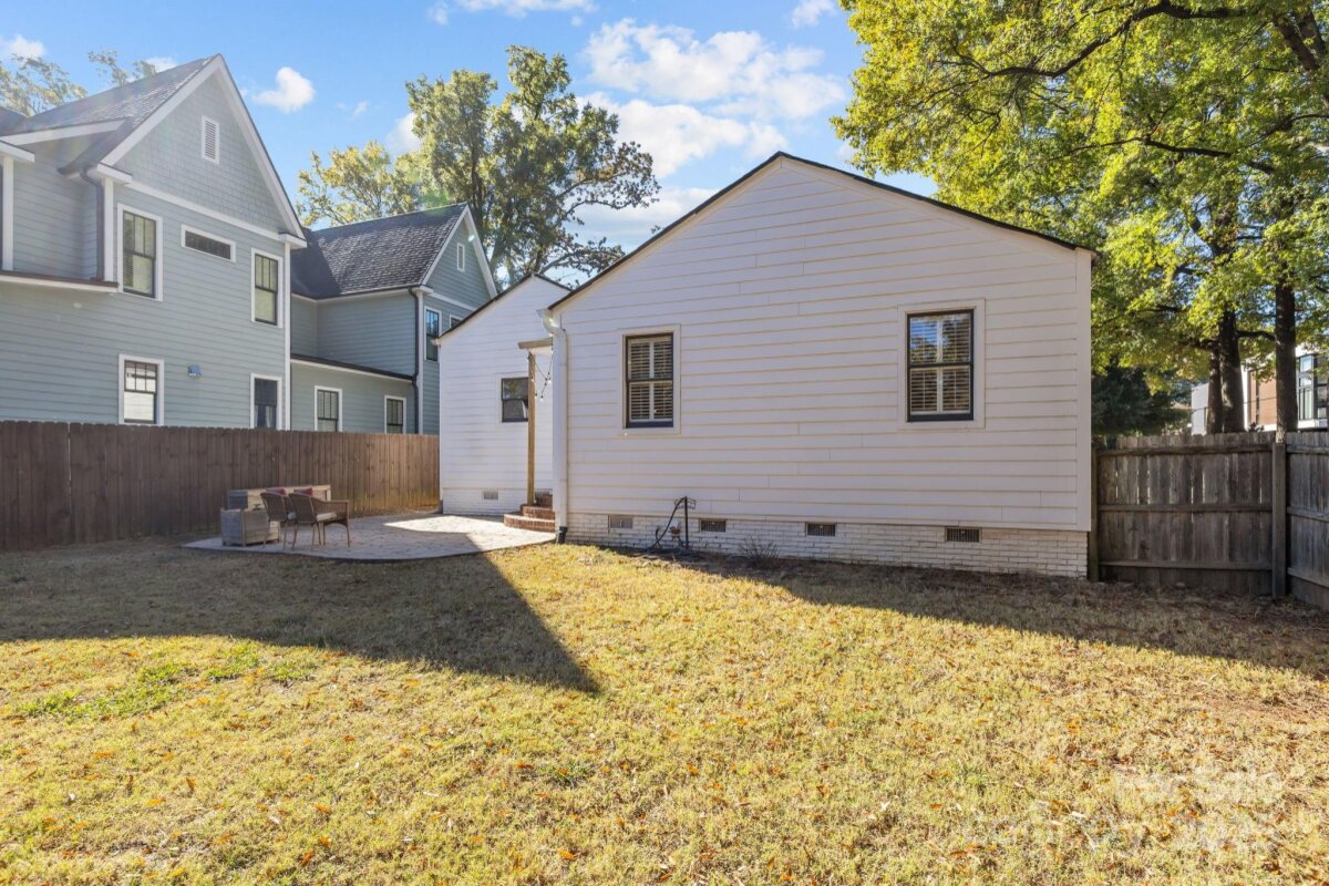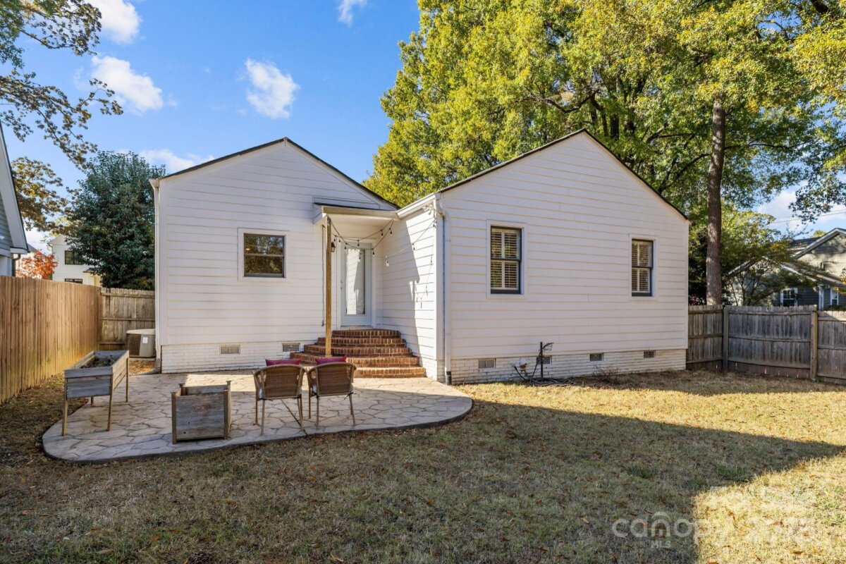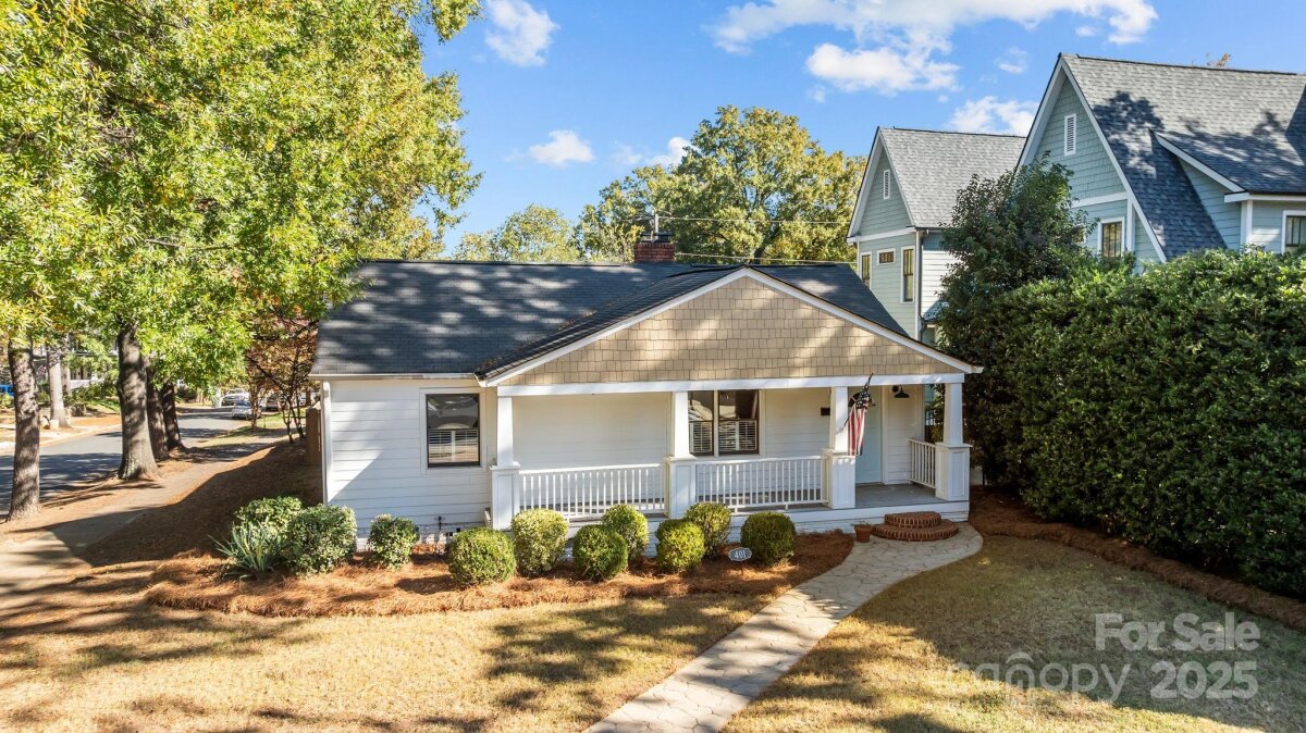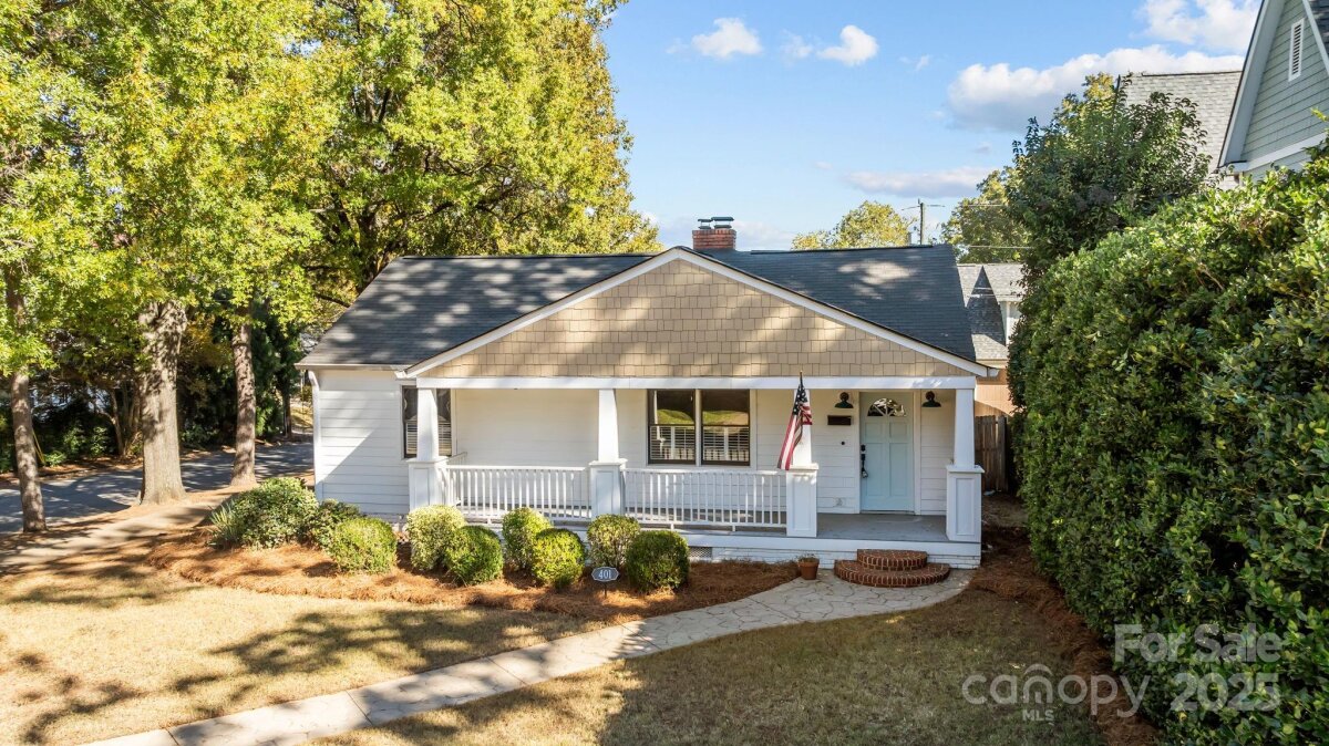 Welcome to 401 McDonald Ave, a beautifully updated ranch-style bungalow nestled in the heart of one of Charlotte’s most sought-after neighborhoods, Dilworth. This home perfectly blends classic character with modern touches. The covered front porch welcomes you inside, where you’ll find gleaming hardwood floors & abundant built-ins that add charm and functionality across the living room and kitchen. The kitchen stands out with striking emerald, green cabinetry, updated light fixtures, and ample storage and counter space. The large primary suite features an ensuite bathroom, while two additional generously sized bedrooms provide comfort and flexibility for guests, or a home office. Situated on a large corner lot, the property offers a private, fenced backyard—ideal for entertaining, relaxing, or gardening. The deep lot provides endless potential, with plenty of room to expand or build an addition while maintaining outdoor living space.