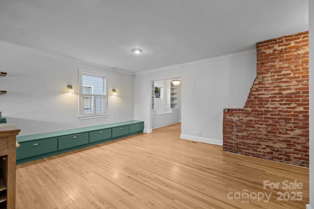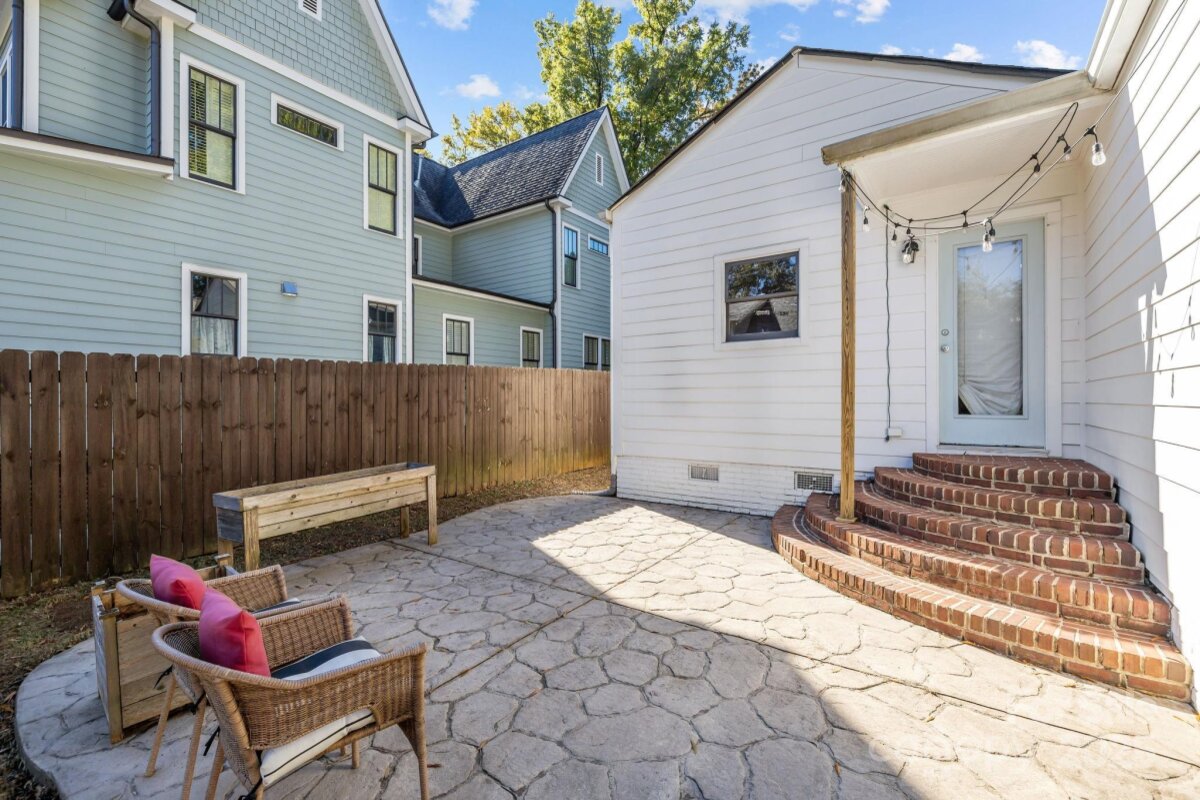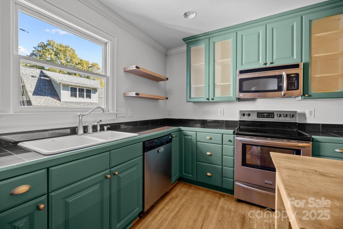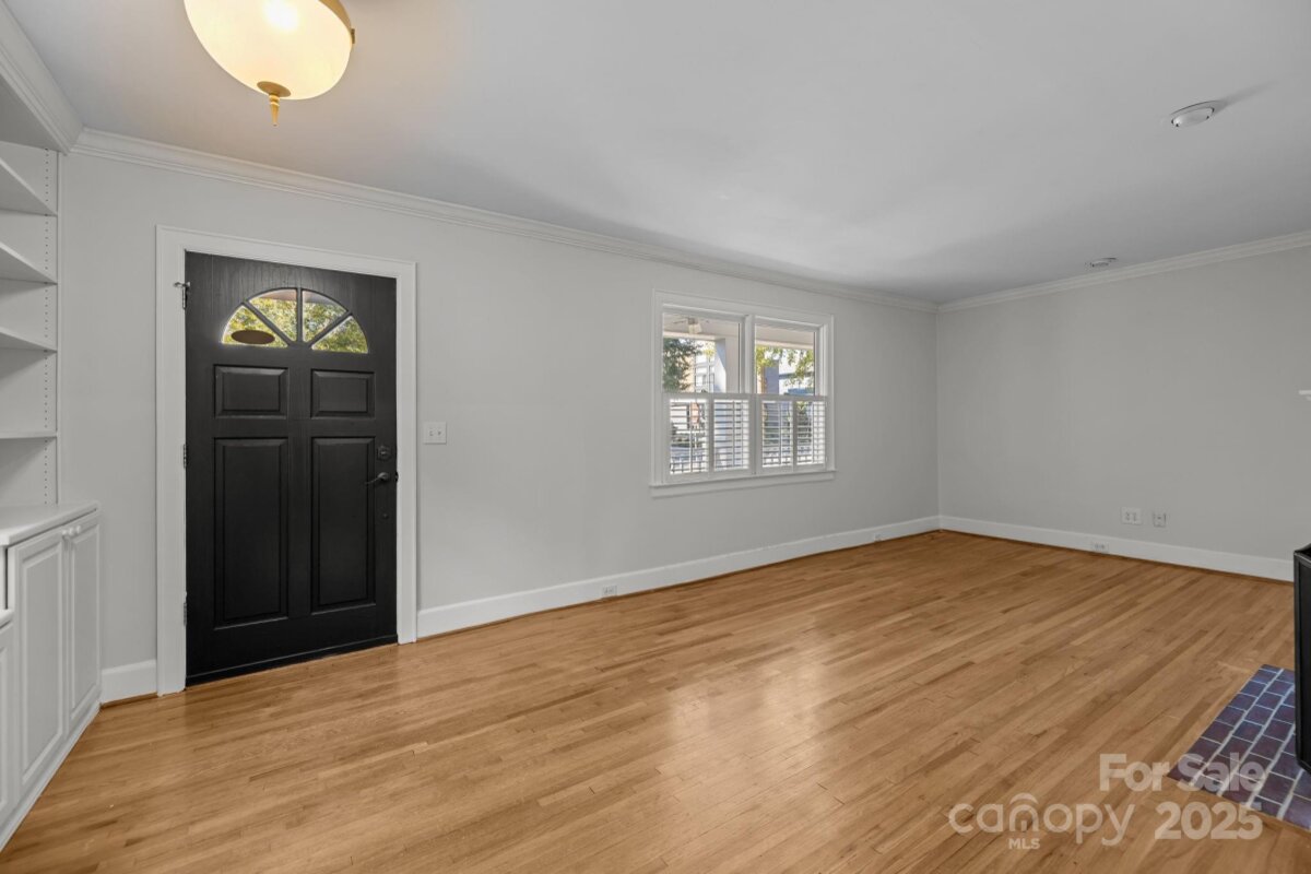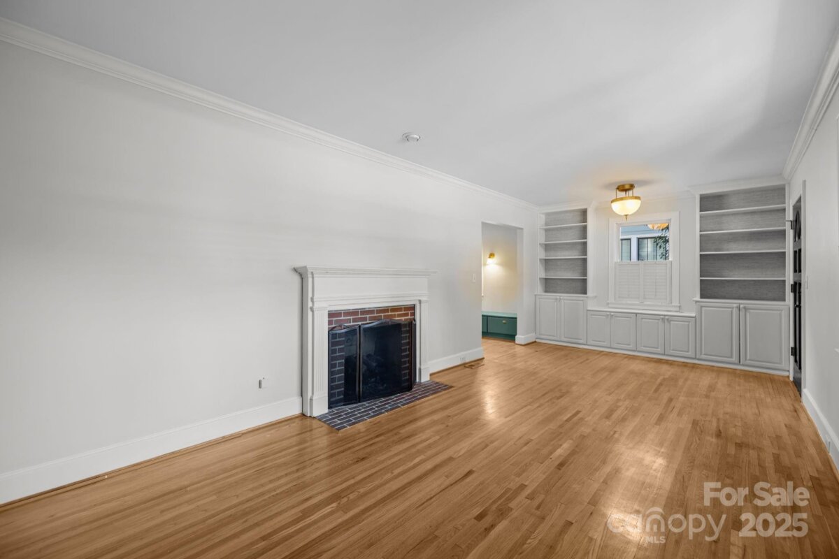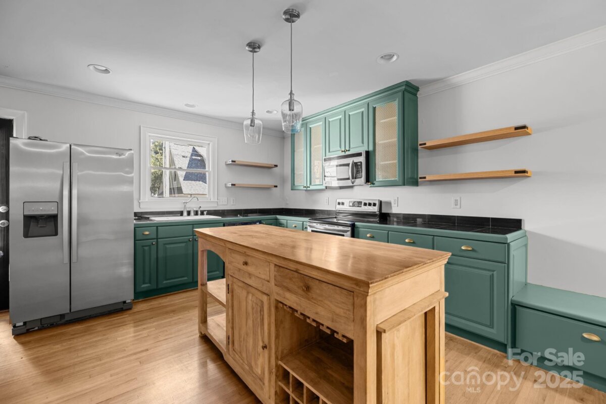 Welcome to 401 McDonald Ave, a beautifully updated ranch-style bungalow nestled in the heart of one of Charlotte’s most sought-after neighborhoods, Dilworth. This home perfectly blends classic character with modern touches. The covered front porch welcomes you inside, where you’ll find gleaming hardwood floors & abundant built-ins that add charm and functionality across the living room and kitchen. The kitchen stands out with striking emerald, green cabinetry, updated light fixtures, and ample storage and counter space. The large primary suite features an ensuite bathroom, while two additional generously sized bedrooms provide comfort and flexibility for guests, or a home office. Situated on a large corner lot, the property offers a private, fenced backyard—ideal for entertaining, relaxing, or gardening. The deep lot provides endless potential, with plenty of room to expand or build an addition while maintaining outdoor living space.