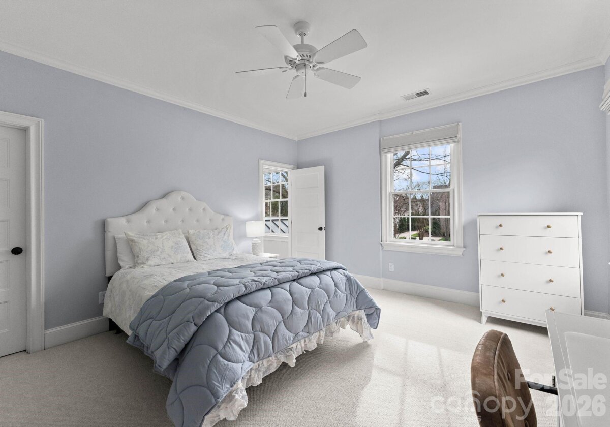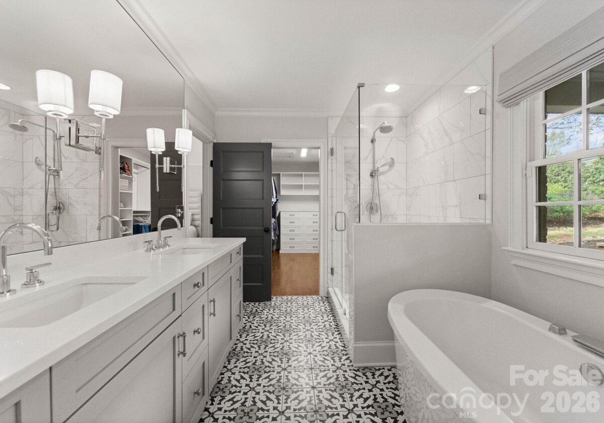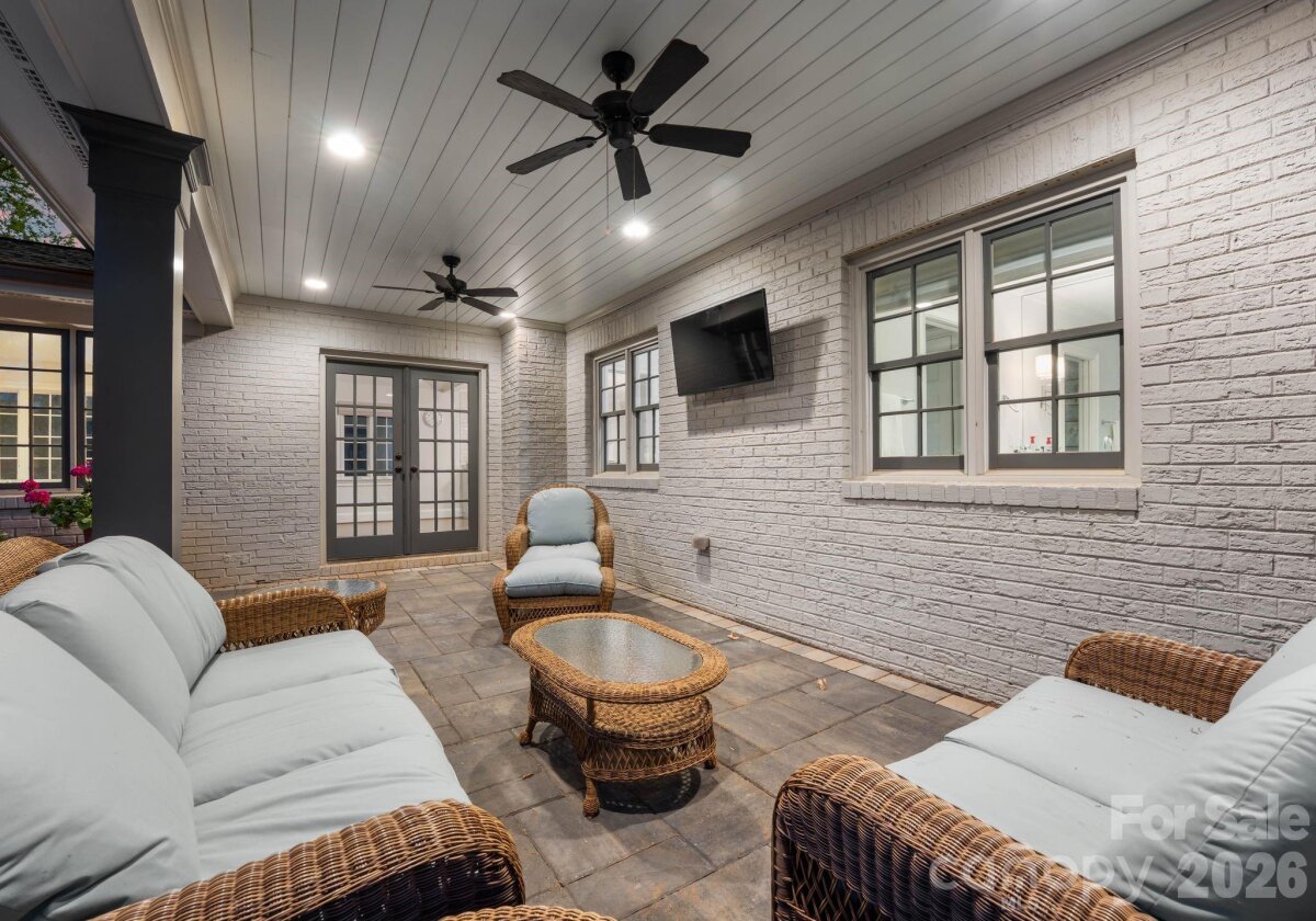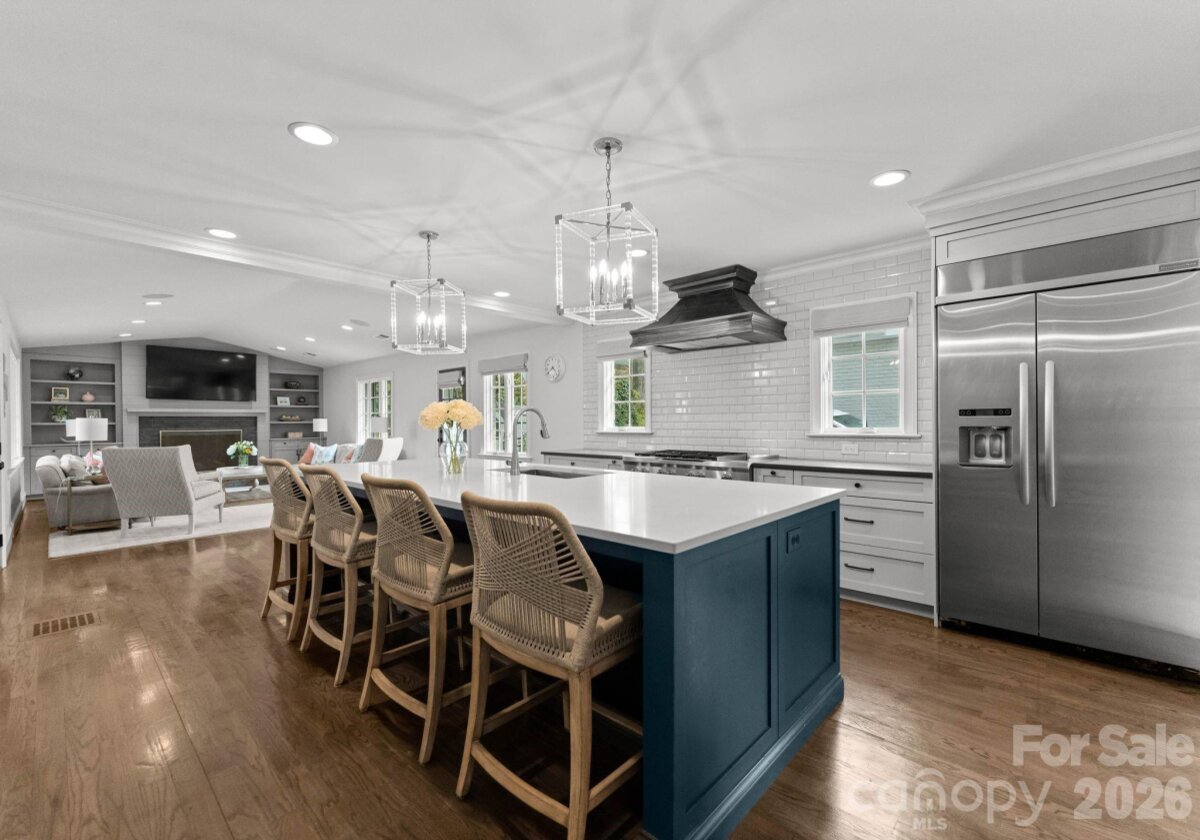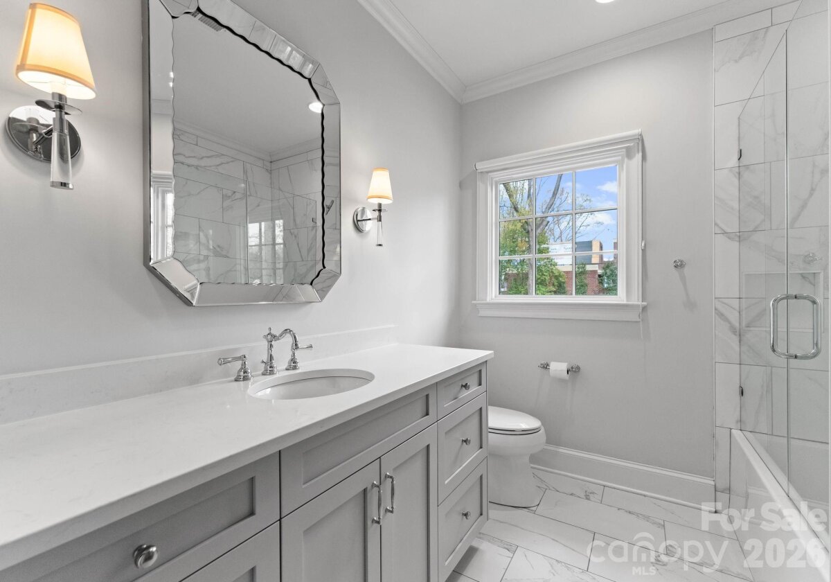 Impeccably renovated in the heart of Myers Park, this 1950 classic perfectly fuses timeless architecture with contemporary luxury. Distinguished by high-end finishes, designer fixtures, and sophisticated craftsmanship throughout, this residence exudes elegance from the moment you arrive. A gracious covered front porch—accented by ceiling fans and generous seating areas—sets the tone for Southern charm refined to perfection. Inside, an inviting foyer opens to a grand formal living room with a stately fireplace, ideal as a gathering space, home office, or music room. Across the foyer, the formal dining room blends seamlessly with the culinary heart of the home through a beautifully appointed butler’s pantry. The designer kitchen commands attention with an oversized island featuring a farmhouse sink, quartz countertops, and counter-to-ceiling white subway tile. A suite of premium KitchenAid stainless appliances includes a 48-inch gas range with six burners, a griddle, and double convection ovens, complemented by a 48-inch built-in refrigerator. A thoughtfully designed drop zone enhances the flow of everyday living. The adjacent family room offers an effortlessly elegant open-concept design with a striking fireplace and a cozy office nook, while French doors extend to an expansive outdoor living area—perfect for hosting or relaxing. The primary suite on the main level is a sanctuary of calm, with elevated ceilings, a spa-inspired ensuite featuring dual vanities, a soaking tub, and a separate glass shower. The adjoining custom wardrobe room and private laundry space create unmatched convenience. The second level features a loft ideal for reading or leisure, three spacious bedrooms with two bedrooms sharing a Jack-and-Jill bath and multiple sinks, while the 3rd bedroom adjoins the guest bathroom, plus an additional laundry room with storage. The uppermost 3rd level offers remarkable flexibility as a fifth bedroom, studio, or bonus retreat, complete with a half bathroom. Outdoor living shines with a covered patio cooled by ceiling fans, a firepit area, and ample room for grilling or al fresco dining beneath the canopy of Myers Park’s renowned mature trees. Perfectly located for those who value convenience and community, residents enjoy proximity to gourmet markets, boutique shopping, fine and casual dining, the Little Sugar Creek Greenway with access to Park Road Shopping Center and Freedom Park, plus nearby Myers Park Country Club golf and tennis. This is Myers Park living at its finest—where timeless elegance meets modern luxury in one of Charlotte’s most treasured neighborhoods.